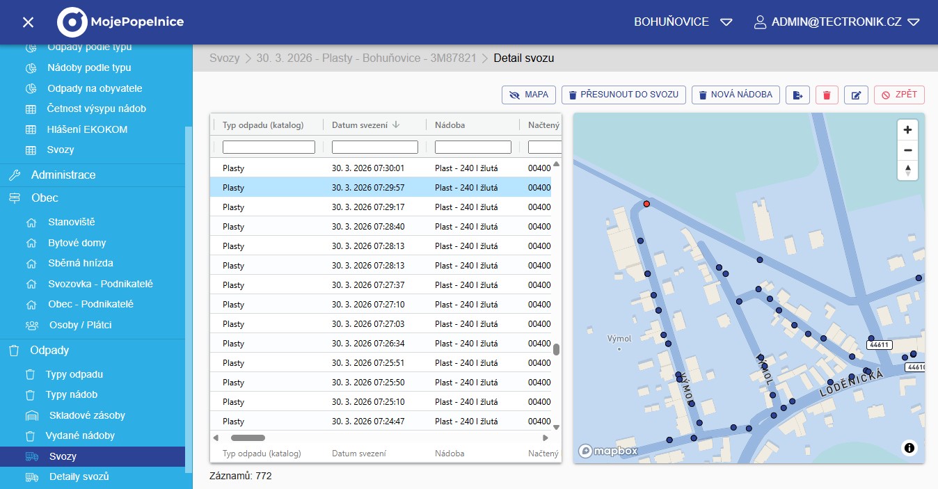 Svezené nádoby si můžete pohodlně zobrazit jak v tabulce, tak i v mapě, abyste měli co nejlepší přehled.
